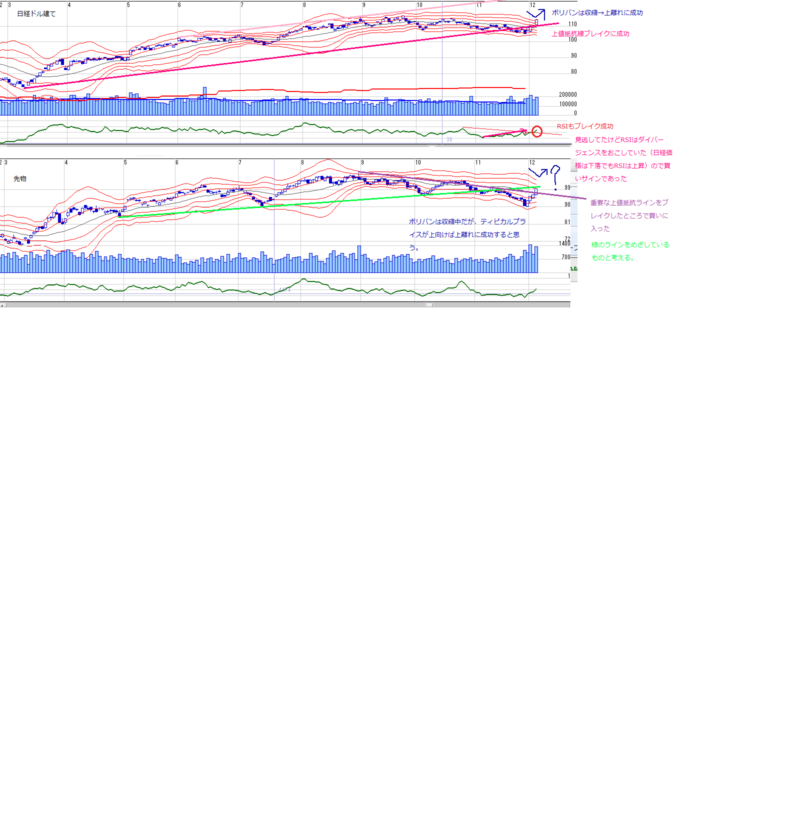 ・ボリバンは収縮⇒上離れに成功。ティピカルプライスもわずかだが上向いてきたことから、ボリバンに沿った上昇が続くものと考える。