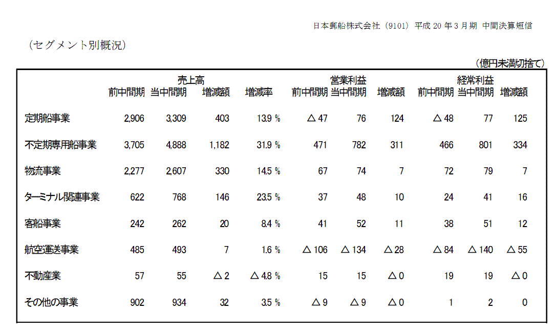 ・日本郵船中間決算発表