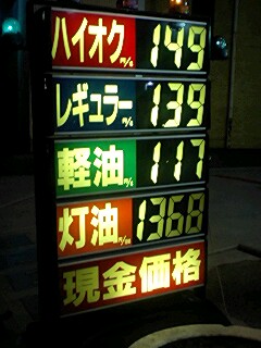 大阪は、セルフで、レギュラー140円、ハイオク、150円、普通のガソスタでは、5円高いですね。