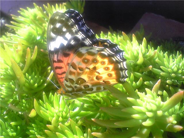 はな , ちょう , ツマグロヒョウモン:この時期パンジーに産卵にツマグロヒョウモンが帰って来ます。今日もベランダのパンジーまで飛んできていました。写真は日向ぼっこに庭でたまたま止まったとこを撮りました。また雨が降ってきましためまぐるしく気候が変わります。