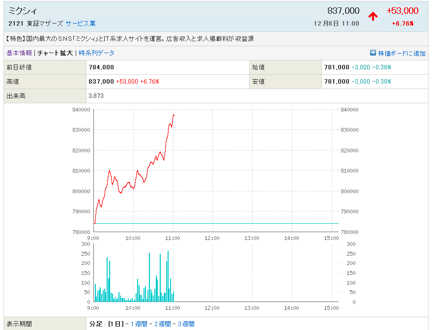 うまくいったわね! じゃ、797000円で1株買い注文いれてください
