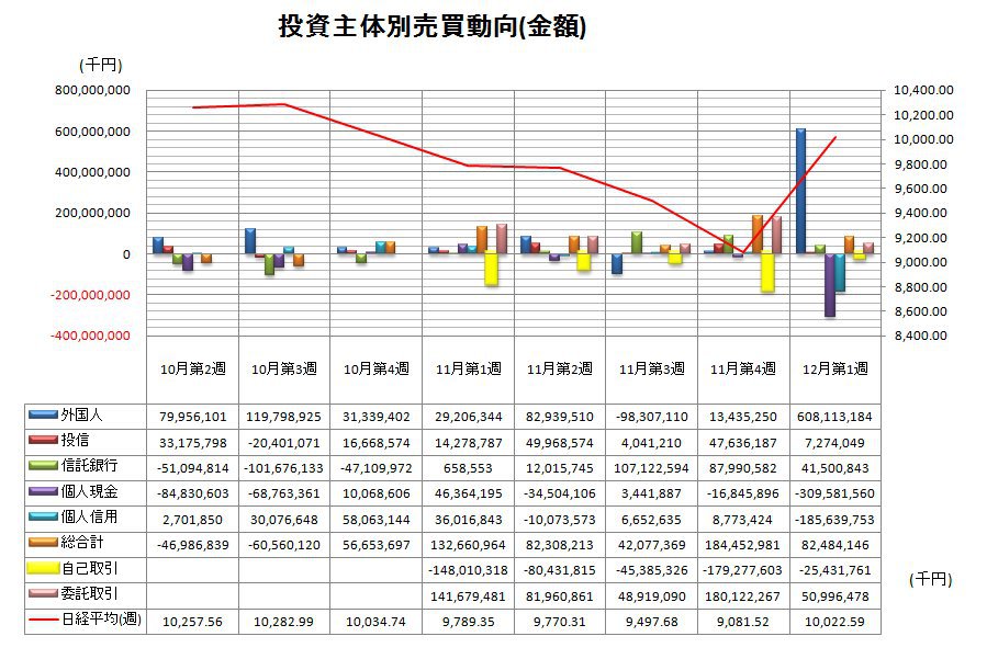 12月第1週投資主体別売買動向(グラフ)