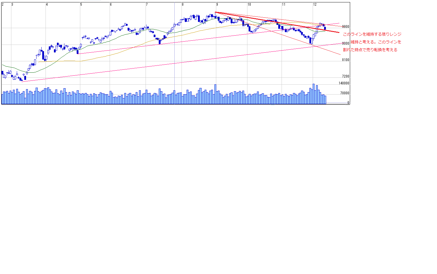3日にファンラインブレイクしてるので、レンジは切りあがったままと考える。