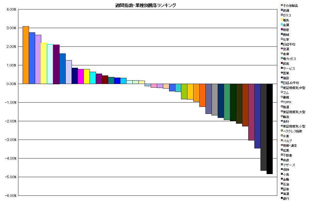 週間 指数・業種別騰落ランキング