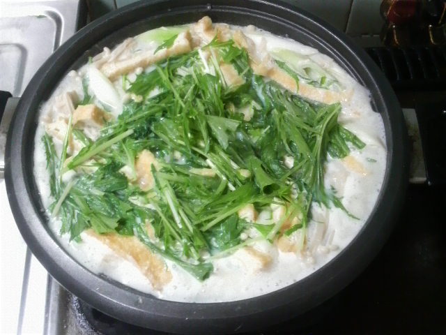 先週に引き続きカゴメ優待料理のトマト鍋にする予定でござりましたが、妻が体調を崩したため、今週はもう少しお腹に優しそうな豆乳鍋にしてみた次第。