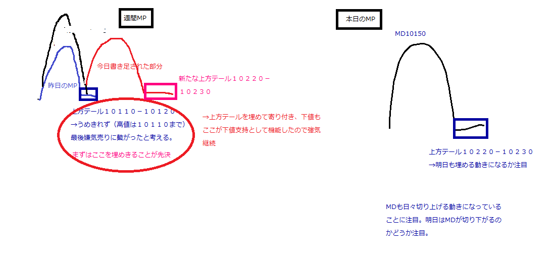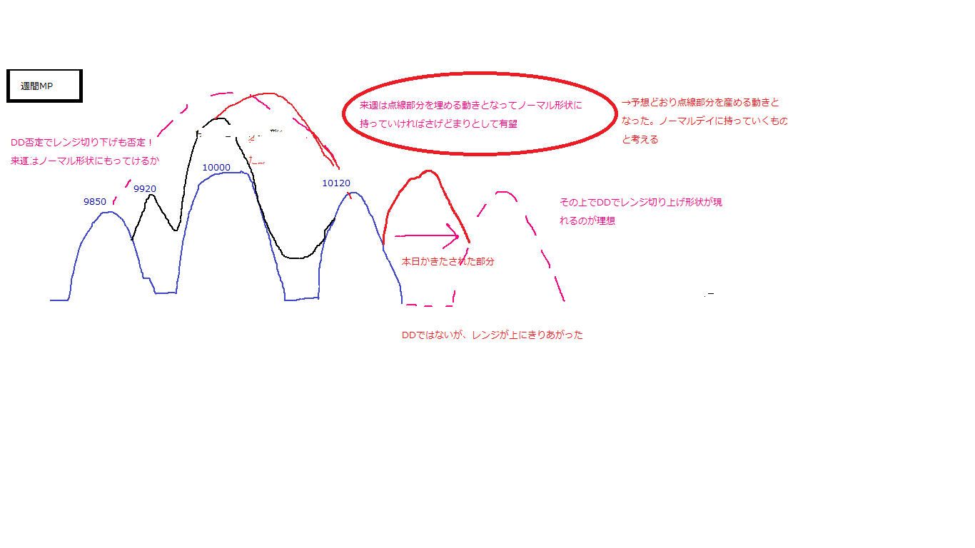 ・ノーマルデイからDDでレンジ切り上げ形状に持っていけるのが理想でしたが、理想に近づいてきた感じです。
