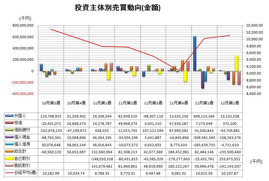 先週まで強気に買い越していた信託銀行は今週は売り越しに転じた。