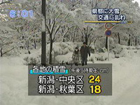 観測地点でトップは新潟市中央区で24センチ、