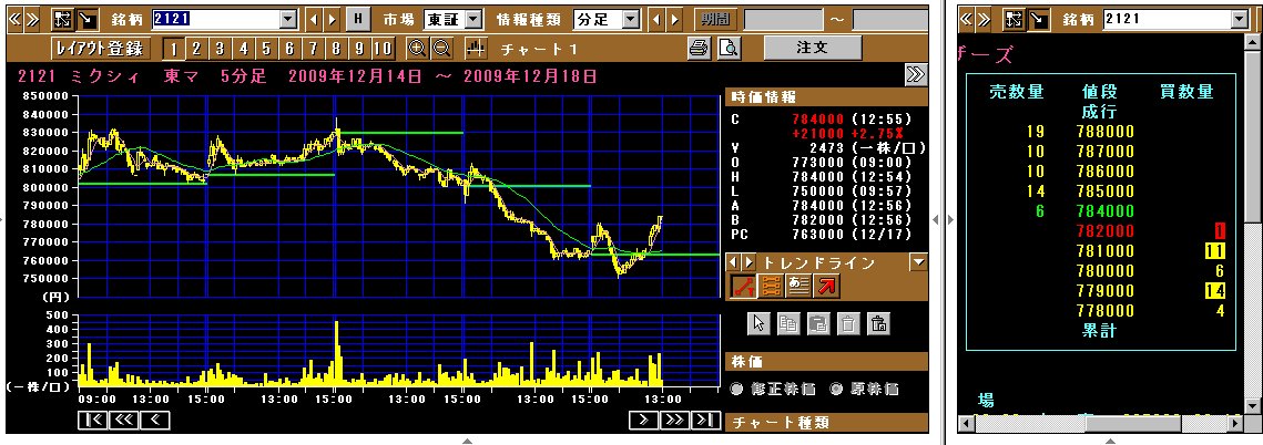 ううっ、・・ミクシィはここで売ると良いかもしれませんよー、下げたらまた上を目指すと思いますから、ここらで1株売りをされたらいかがです? 高いとこは売り、安いとこは買いですよ
