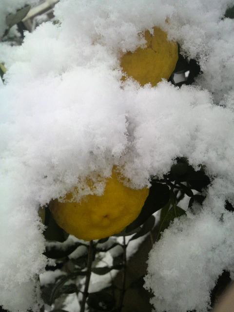 以前ご紹介したユズにも雪が積もり、ユズが見えないほどでした。