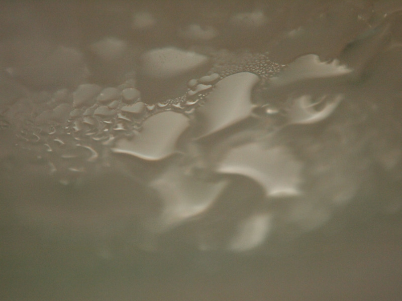 右の写真は、グラスで焼酎をロックを飲んでいる時に付いた水滴です