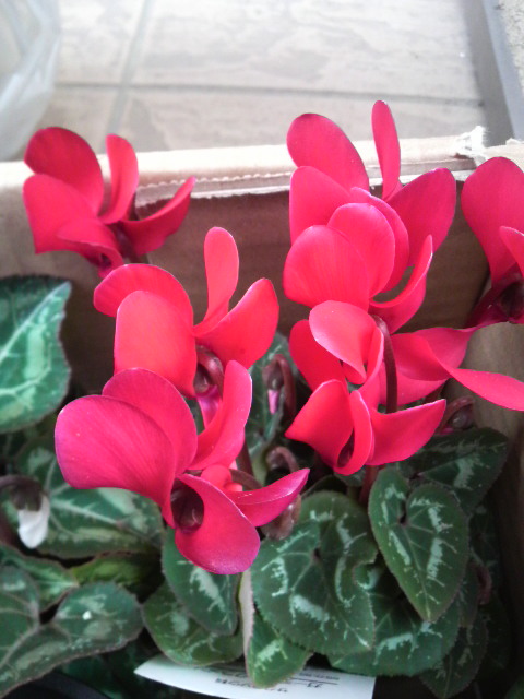 ミニシクラメンは値段的にも手ごろですし、ちょっとした彩りがほしいときにも便利に使えますね。