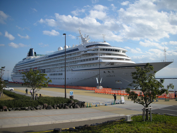 散歩に行く港に飛鳥Ⅱが寄港していました。