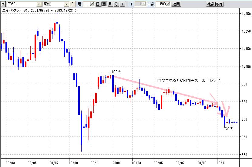 1年間で約-250円近く下げています。