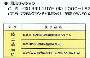 11月7日、8日に開かれる「防衛技術シンポジウム2007」展示セッションにて