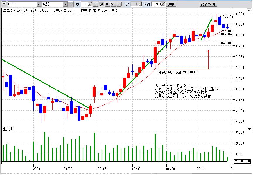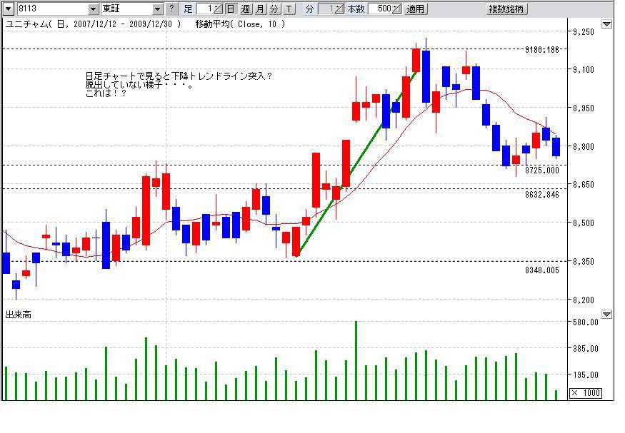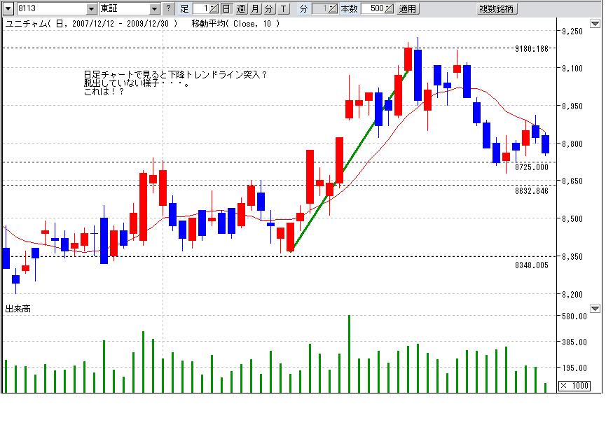 ひとつ前のローソクの高値を下値支持線として順調に推移しているようです。