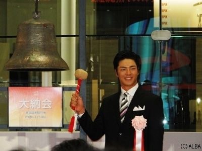 石川先生(選手)が5回、鐘を鳴らし終わった大納会。