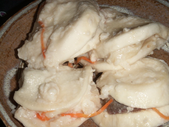 ブリのでかいやつが安かったので、カブラの間にはさんだブリの切り身も厚いのです