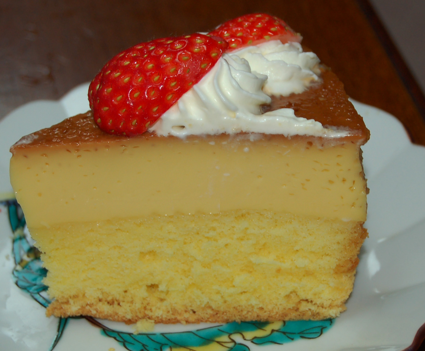 プリン液の上にスポンジ生地を流し込むと・・・なんとスポンジ生地が見事に浮くのでそのまま焼くだけなんです。