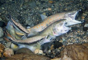 写真はサツキマスの産卵なのですが、海に行ったきり子供が帰ってきません。