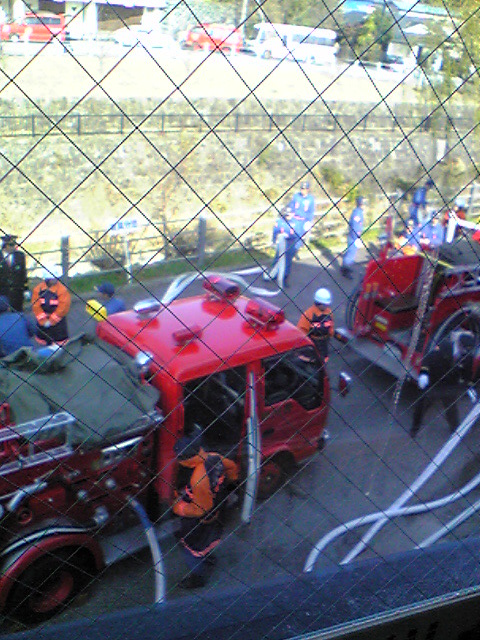 散策するうちにパレードの時間が近づいてきたので会場に戻り、近くの建物の2階に行って見学しました。長男は消防車がたくさん来たのではしゃいでいました。長男はパトカーを見ても救急車見ても「消防車」というので消防車が好きなのかも(^.^)さすがにバスは「バス、大きい」というので、バスに乗せてよかったです。