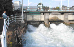 まんまと水を取り込んだ広瀬川は前橋市の町のど真ん中で水力発電をする。
