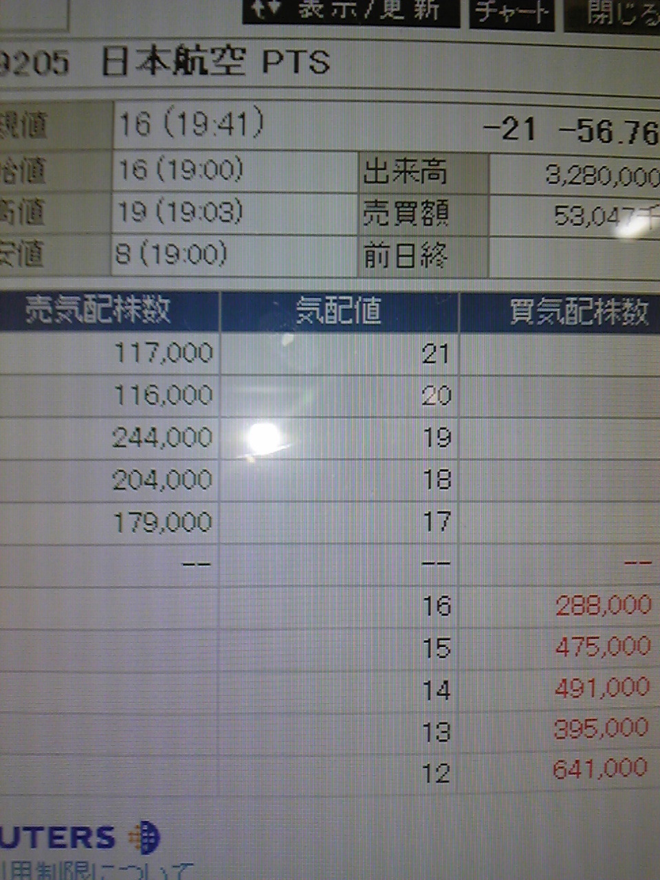 JALが夜間私設市場のPTSで8円の安値を付けています.