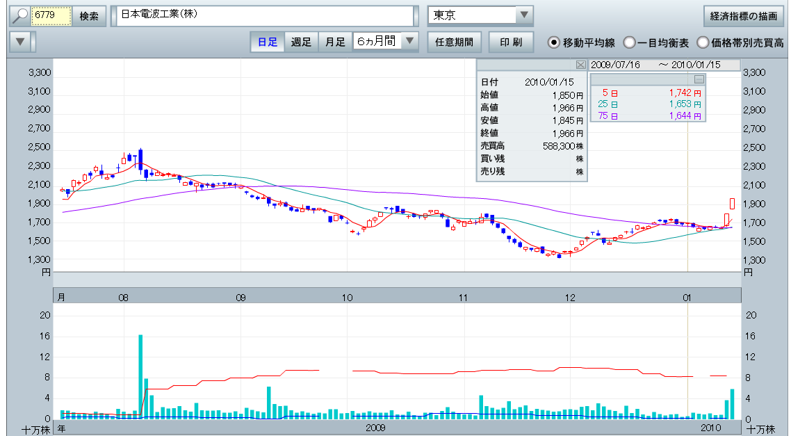 6779:日本電波工業が急騰しましたが来週はどうなるでしょうか