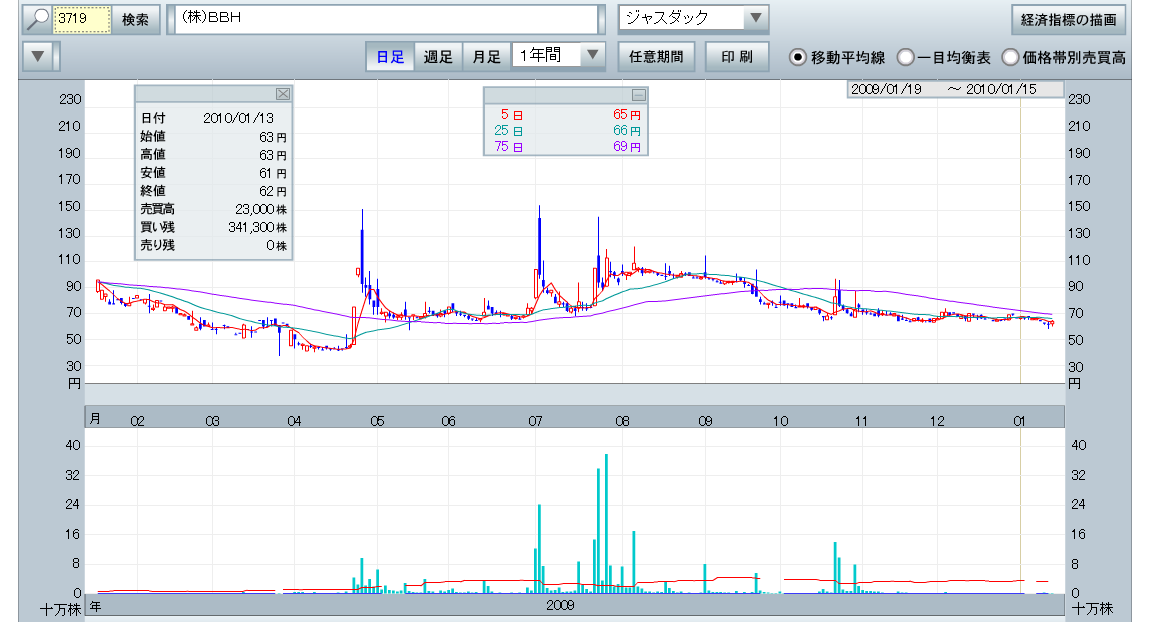 新興株特有の針山チャートです