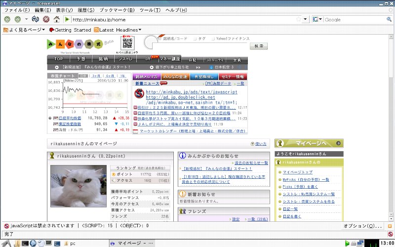 HDDの付いてないパソコンで、Linuxを無料だうんろーどしてCD-Rに焼いたもの(Linux OS)で起動して、そんでもって みん株 を運用すると、軽くて快適です