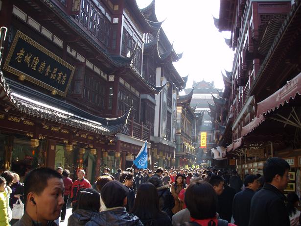 豫園周辺の豫園商城は、多くの商店が軒を並べ、中国人の観光客でごった返していた。