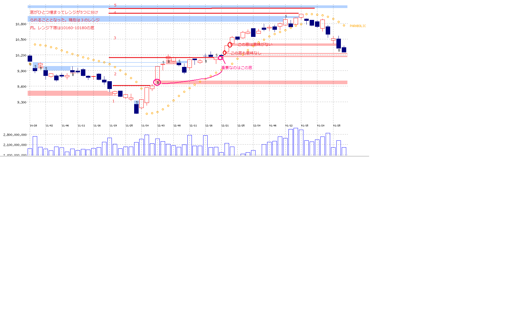 これが相場が高値圏にあれば多めに売りますし、自分のポジションに売りがなければ多めに売ります。