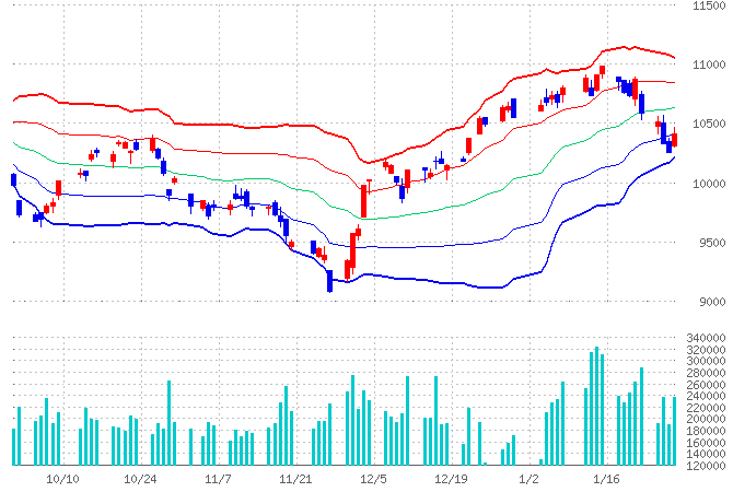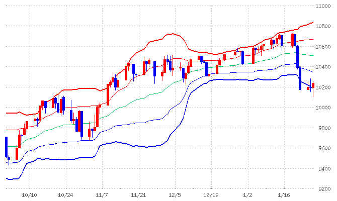 > 日経(右1/28日足チャート)がこれを好感して-2σで