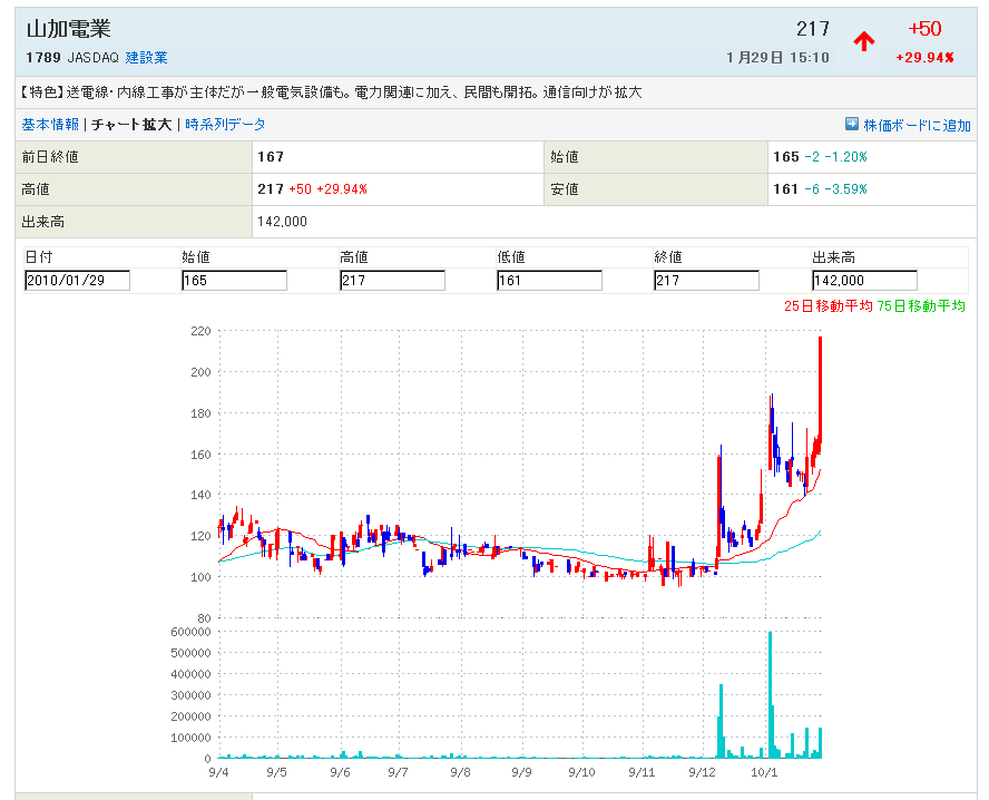 1月7日の日記で、1789:山加電業にカシラー右っ と書きましたが、本日急騰でSTOP高です