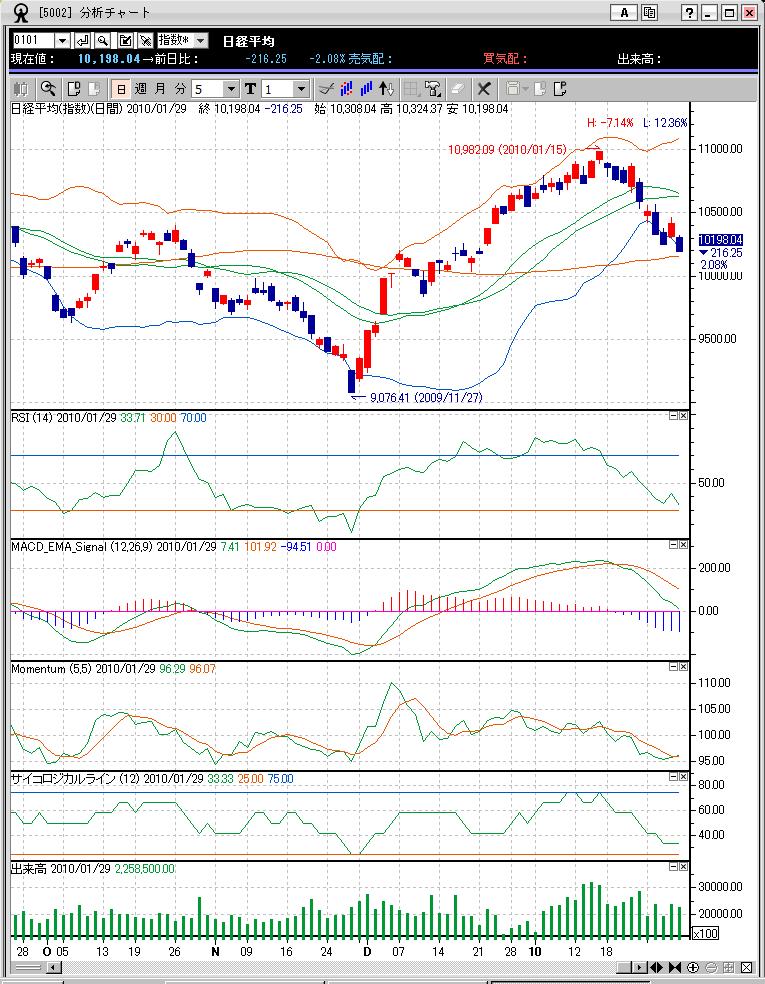 【解説!?】[日経平均 10,198.04(10,590.55)]()は一週間前
