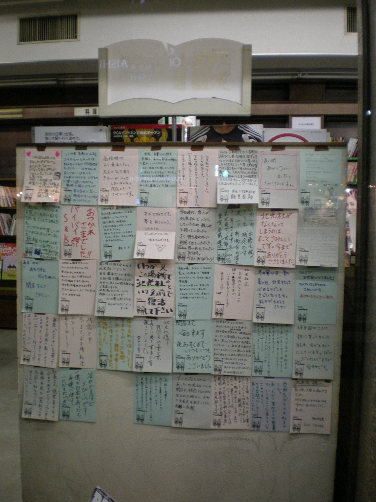 閉店間際には店のブックカバーをデザインしたポストカードが配られ、訪れた人はいつまでも別れを惜しんでいた。