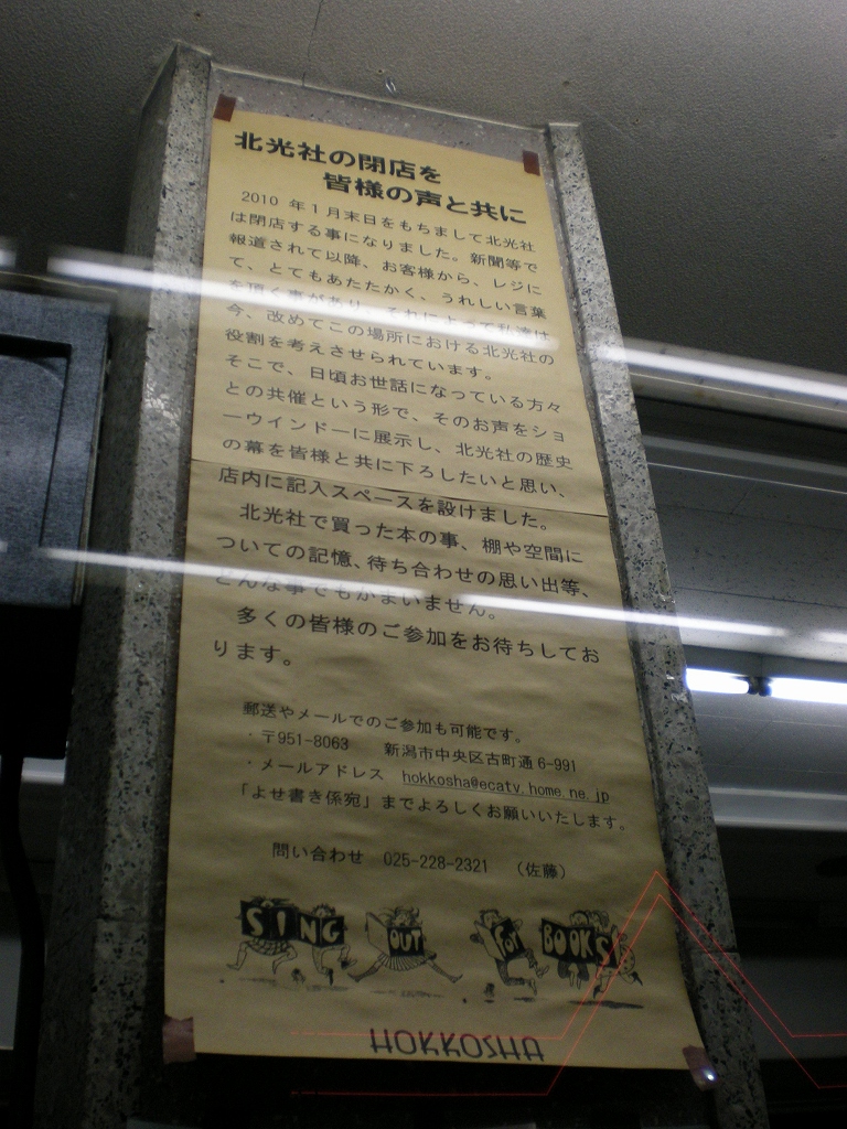 新潟市古町の老舗書店「北光社」が31日、閉店し、常連客などが別れを惜しんだ。