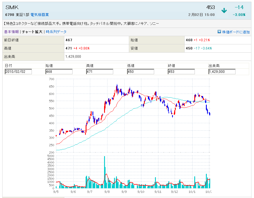 ゆうべ液晶モニターを修理してて、SMKの部品がついてたのでチャートを見たら買いだなーっておもっちゃいましたぁ!