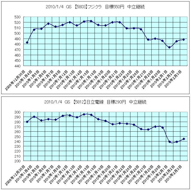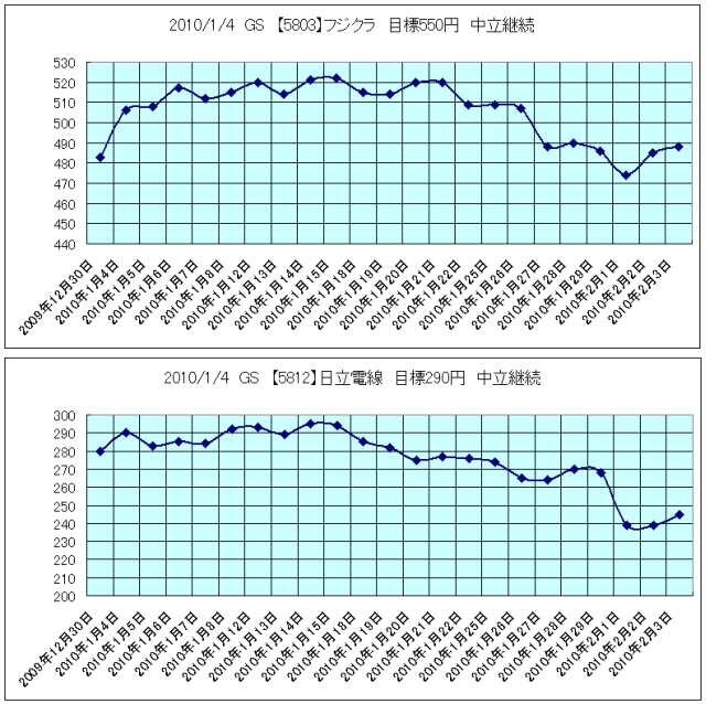 2010/1/4 GS 【5812】日立電線 目標270円→290円 中立継続