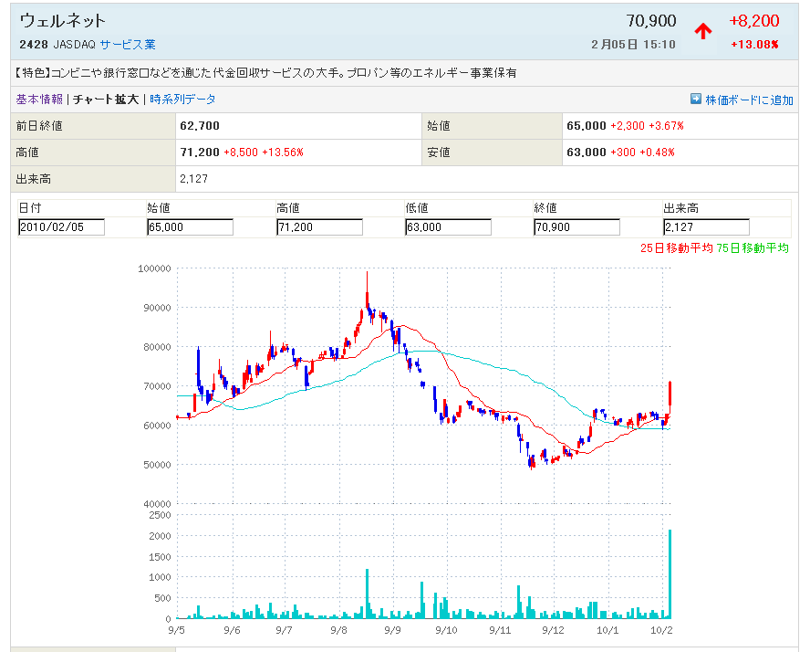2428:ウェルネットが急騰しましたが月曜は寄り天でしょうか?