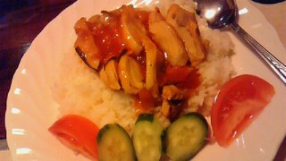 一番影響がなさそうなチキンのトマト煮がかかっているライスを頼みました。
