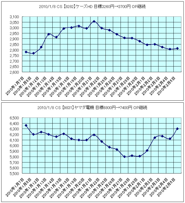 2010/1/8 CS 【8282】ケーズHD 目標3260円→3700円 OP継続