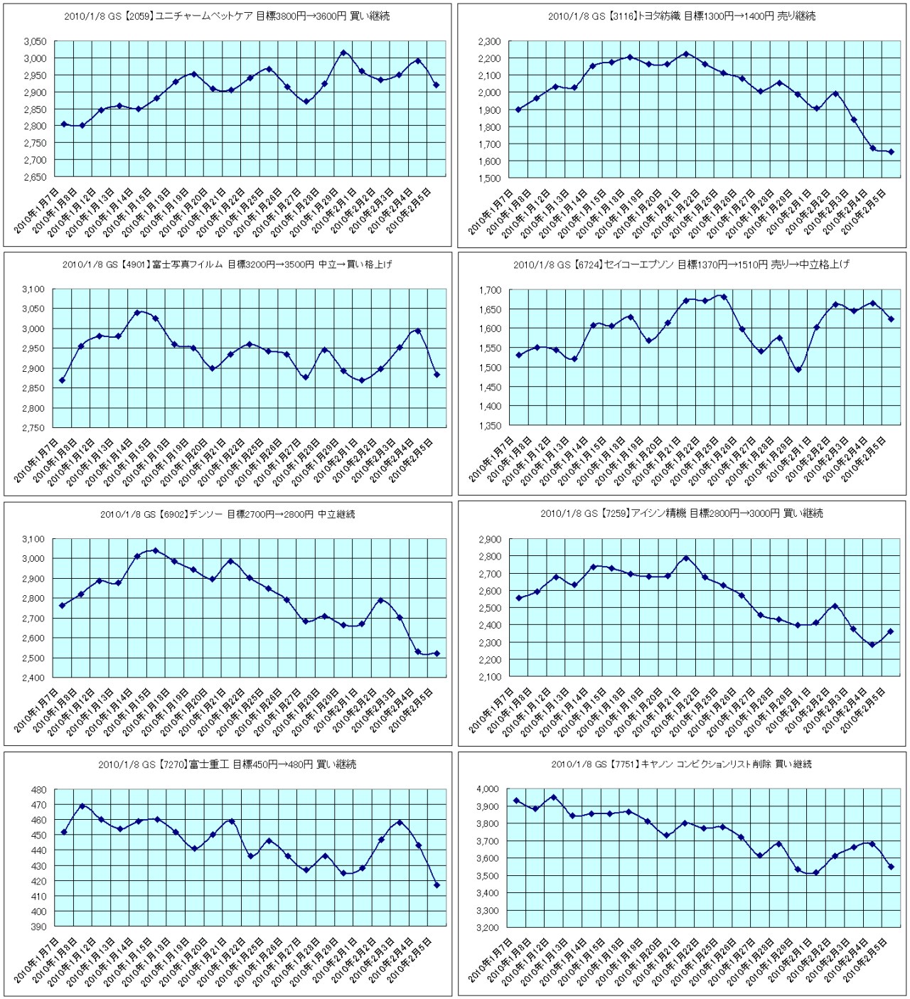 2010/1/8 GS 【7259】アイシン精機 目標2800円→3000円 買い継続