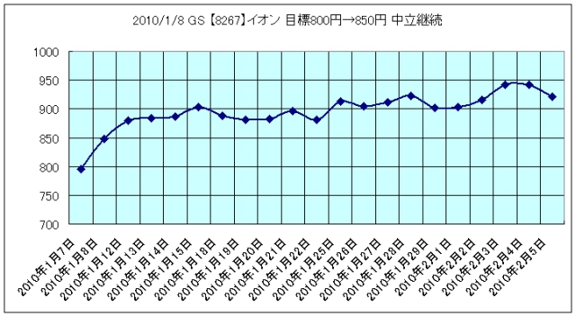 2010/1/8 GS 【8267】イオン 目標800円→850円 中立継続