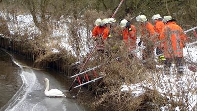 白鳥は無傷でしたが、少し怪我をしていたようです。消防隊のスポークスマン、マーティン・フォスターはこうコメントしています。