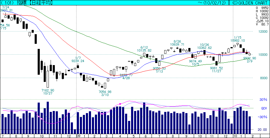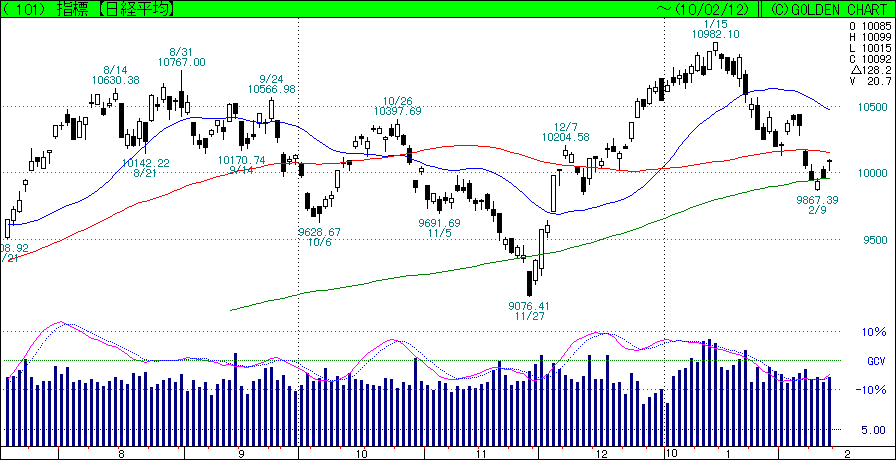 来る週は、日経¥10,000~10,150で値固めができるかどうかに注目かと存じまする。