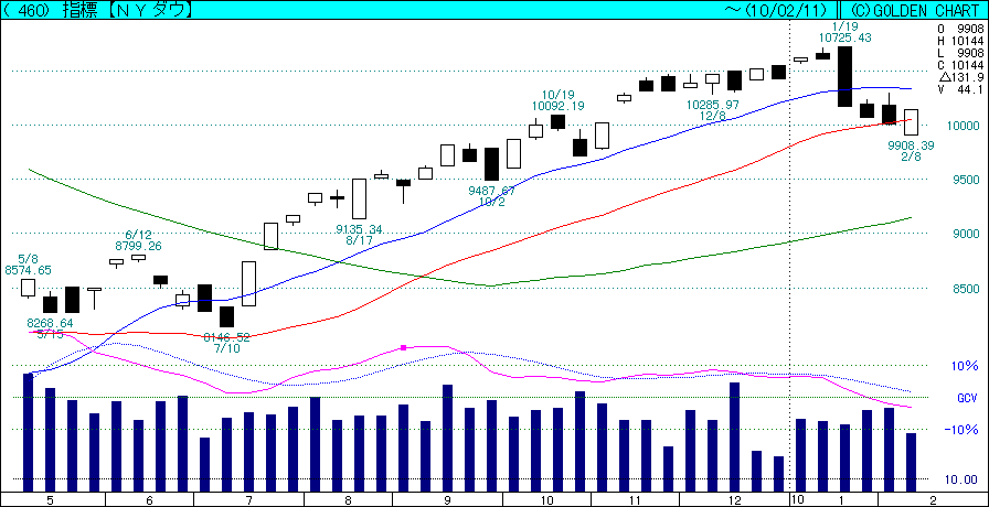 先週の底堅さと売られすぎ指標から察するに、今週新たな悪材料が出ぬ限りは、大きく下にぶれるとは考えにくいかと思っておりまする。注目点は¥10,000の値固めが出来るかどうかでござりましょうか。