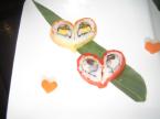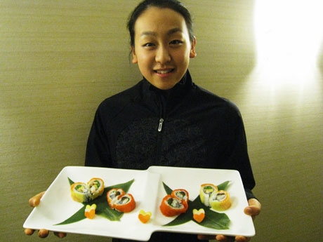 バンクーバーの日本食レストラン「亀井ロイヤル」のメニューに2月14日、愛知県出身でオリンピックで活躍中の浅田真央選手が選んだ具で巻いたハート型のすし「真央ロール」が登場した。