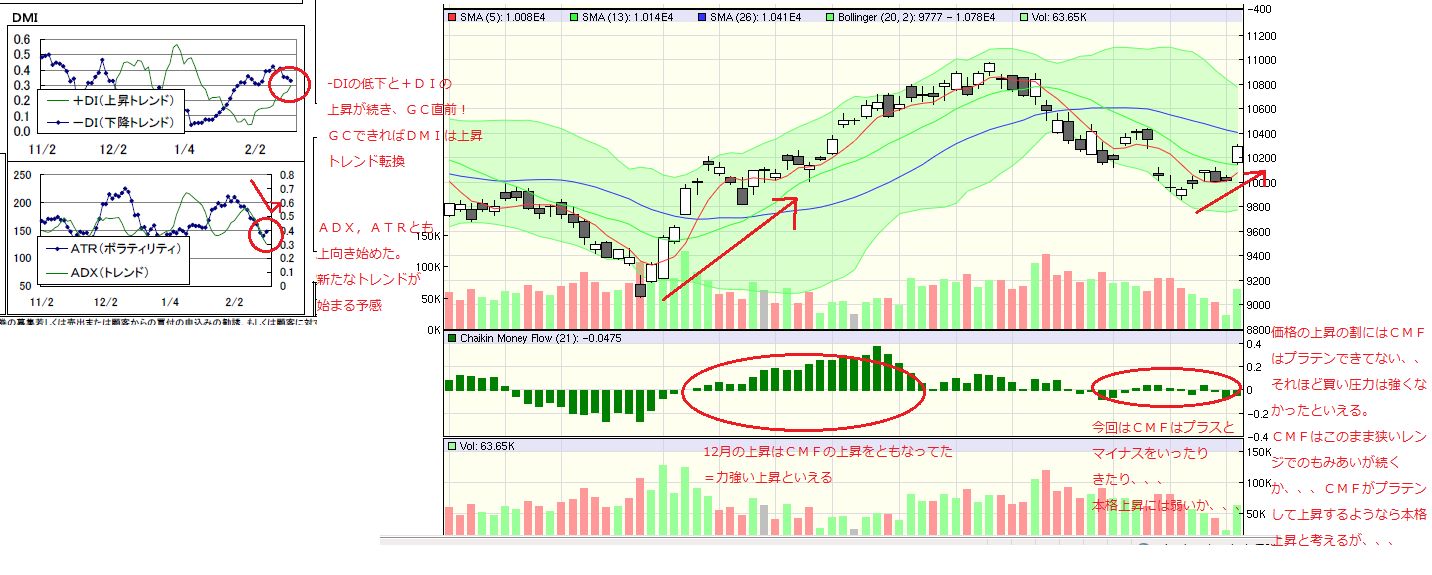 12月の上昇はCMFの上昇をともなった強い上昇であったことと比べると、弱い印象を受ける。力強い上昇とはいえず。