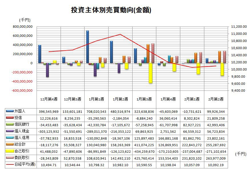 2月第2週投資主体別売買動向(グラフ)